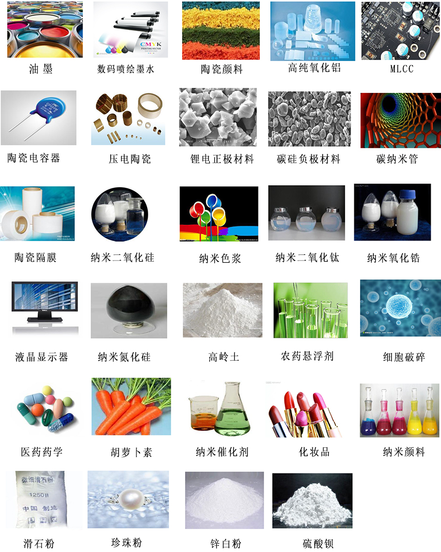 陶瓷材料、電池材料、數(shù)碼噴墨、高性能涂料、制藥等領(lǐng)域的研究與測試
